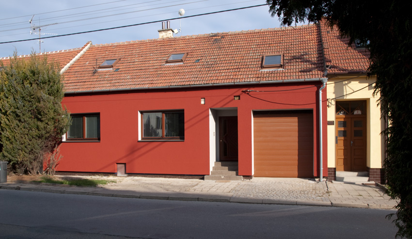Auto Google projelo ulicí Hoštickou bodužel dříve, než jsme provedli zateplení našeho domečku, takže barva fasády už neodpovídá realitě.